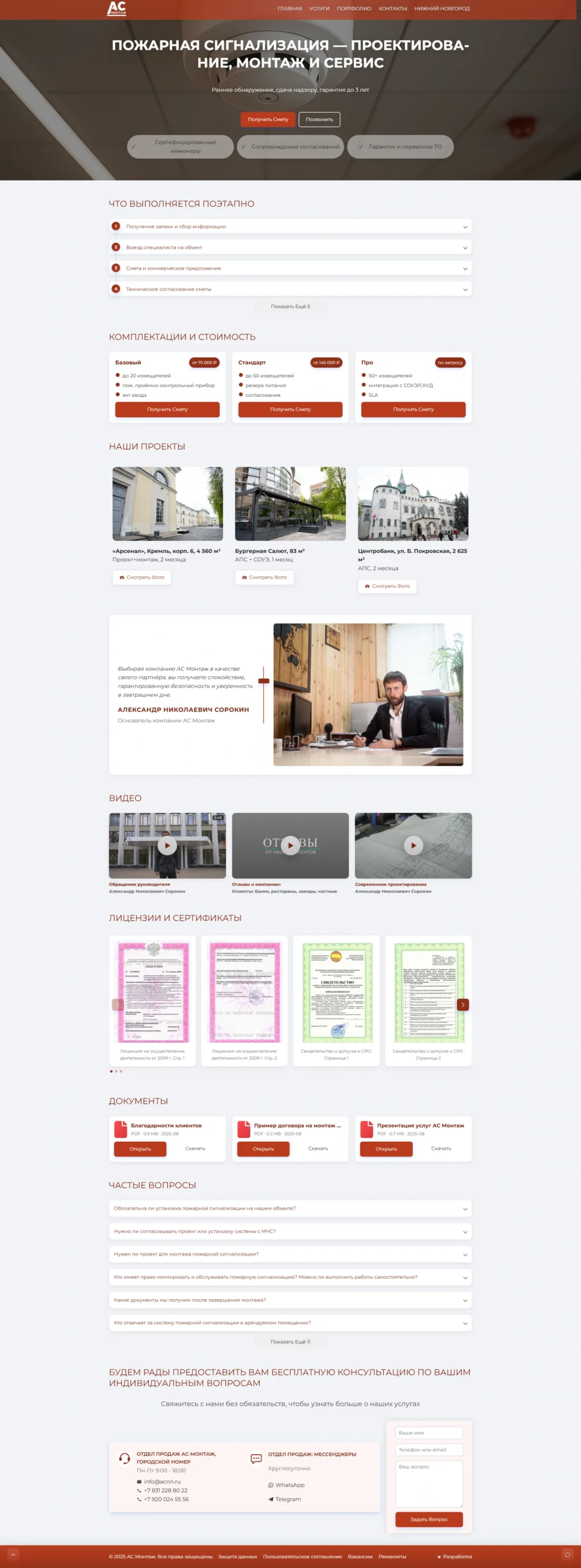 The ACNN website at acnn.ru presents services in fire protection, security and video surveillance with a clear structure and calm B2B design.